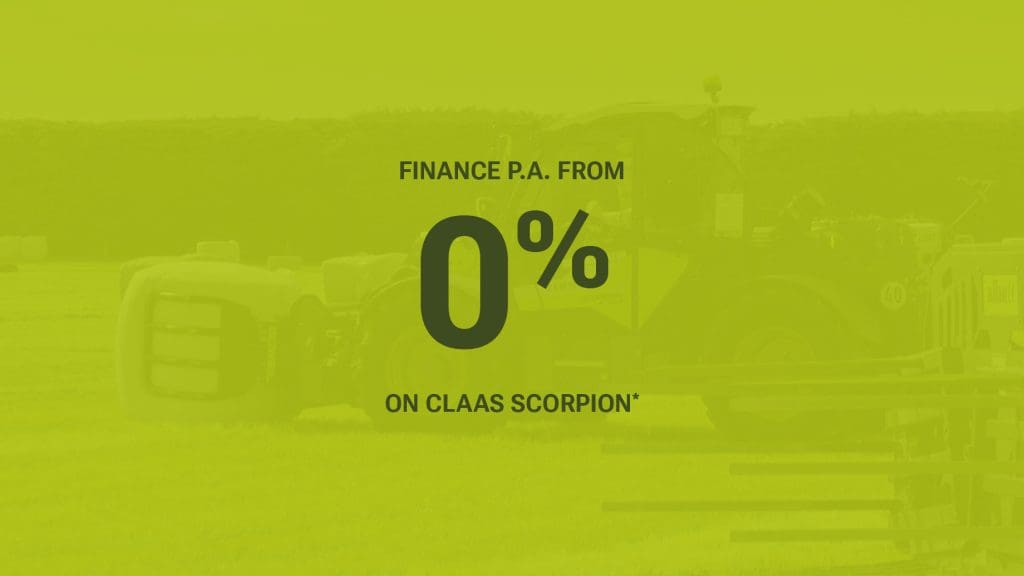 Finance from 0% on all CLAAS SCORPION models, until the 30th June 2026*.