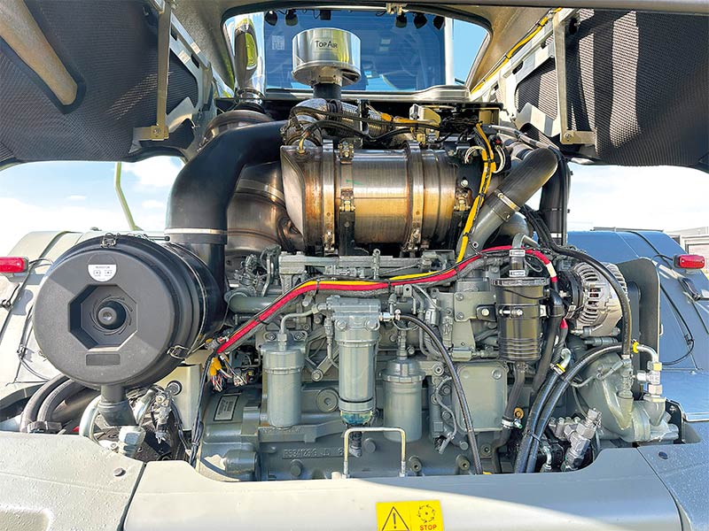 The CMATIC hydrostatic transmission is the only one on the market in this class of ag loader and is available thanks again to the east/west engine (more on that later) because you don’t need a direct drive from the engine itself. Instead, the power comes from two axial piston motors for max pushing capacity. However, once ground speed is above 16km an hour, one is disconnected to reduce wear when in transport. Additionally, transmission and hydraulic oil are in one reservoir, with recommended changing every 1000 hours.